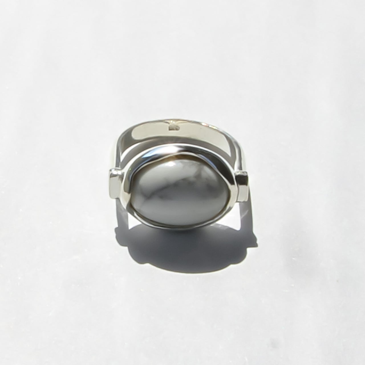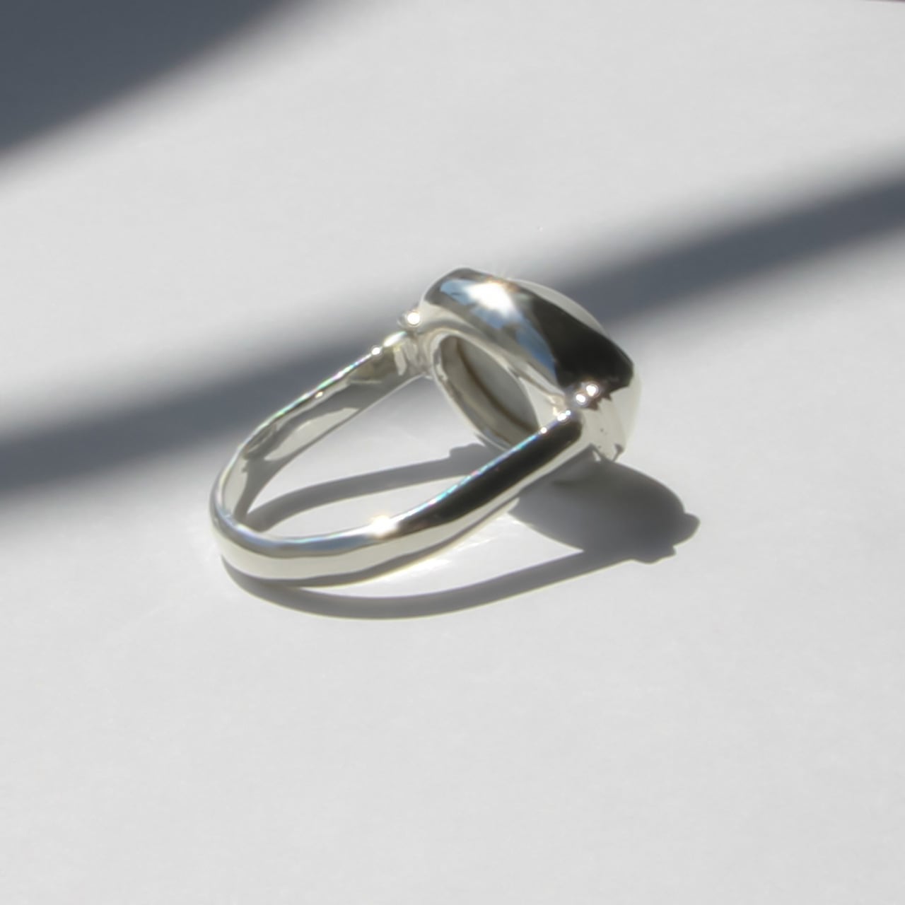 リングの形状が特徴的で着用時に指輪がくるくる回ってしまうのを防ぐデザインとなっています。