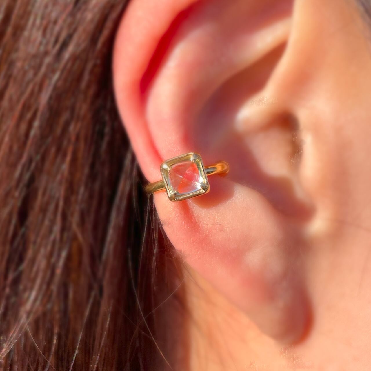 爽やかなブルートパーズをあしらった、夏らしいデザインのイヤカフです。